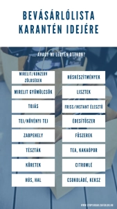 Mirelit zöldségek: cél, hogy minél ritkábban járjunk bevásárolni koronavírus idején. Tehát próbáljuk a fagyasztót telenyomni ilyenekkel, mint pl. mirelit zöldborsó, zöldbab, brokkoli, karfiol, kelbimbó, kukorica, vöröshagyma (apróra vágva), petrezselyem stb. Konzervekben is gondolkodhatunk, de ügyeljünk rá, milyen lében teszik el!