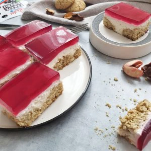 A folyamat nálam kicsit furán indul általában új receptek kitalálásánál. Először is kiindulásként szerettem volna valami olyat alkotni, amihez felhasználhatom a frissen vásárolt krém-tehéntúrót. Aztán tudtam azt is, hogy ősz ide vagy oda, nekem valami intenzív színre van szükségem az egyik rétegnél. Innen már gyorsan meglett a felső réteg: legyen piros szörpös, hogy egy kicsit a gyerekkor hangulatát idézzem vissza.