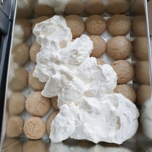 - A babapiskótás rétegre kanalazzuk, szépen egyenletesre elsimítjuk, majd betesszük pár órára a hűtőbe pihenni.