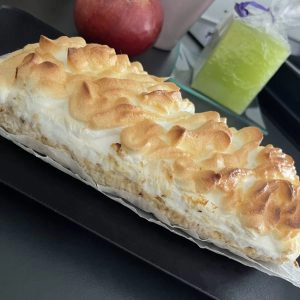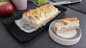 7. Ha kezd megpirulni a sütink teteje, kivesszük, és rákanalazzuk, vagy habzsák segítségével ráfújjuk a tojásfehérjehabot.