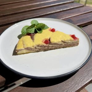 Tehát ebéd utáni desszertnek, amikor már úgyis kezdesz jóllakni, mehet egy igazi szelet még a fogyizóknak is:)